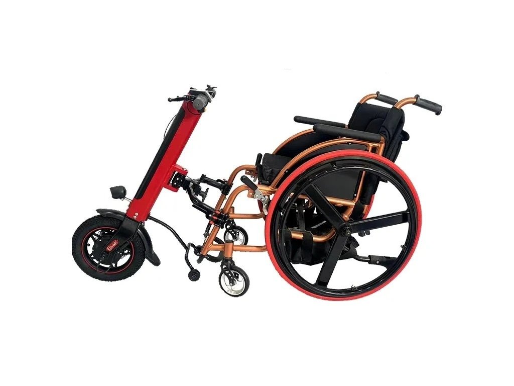Objevte novou úroveň mobility s naším přídavným pohonem určeným pro invalidní vozíky. Tento inovativní systém je navržen tak, aby poskytoval uživatelům maximální komfort a svobodu pohybu. S předním kolem vybaveným výkonným motorem a vysokokapacitní lithiovou baterií se vaše každodenní aktivity stanou mnohem snazšími.