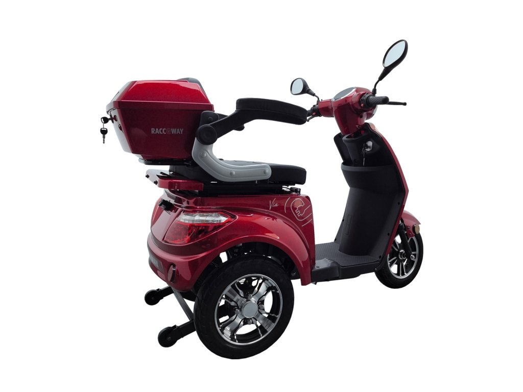 - Elektrická tříkolka RACCEWAY VIA 2022 má náhon na zadní kola přes diferenciál jako u auta.